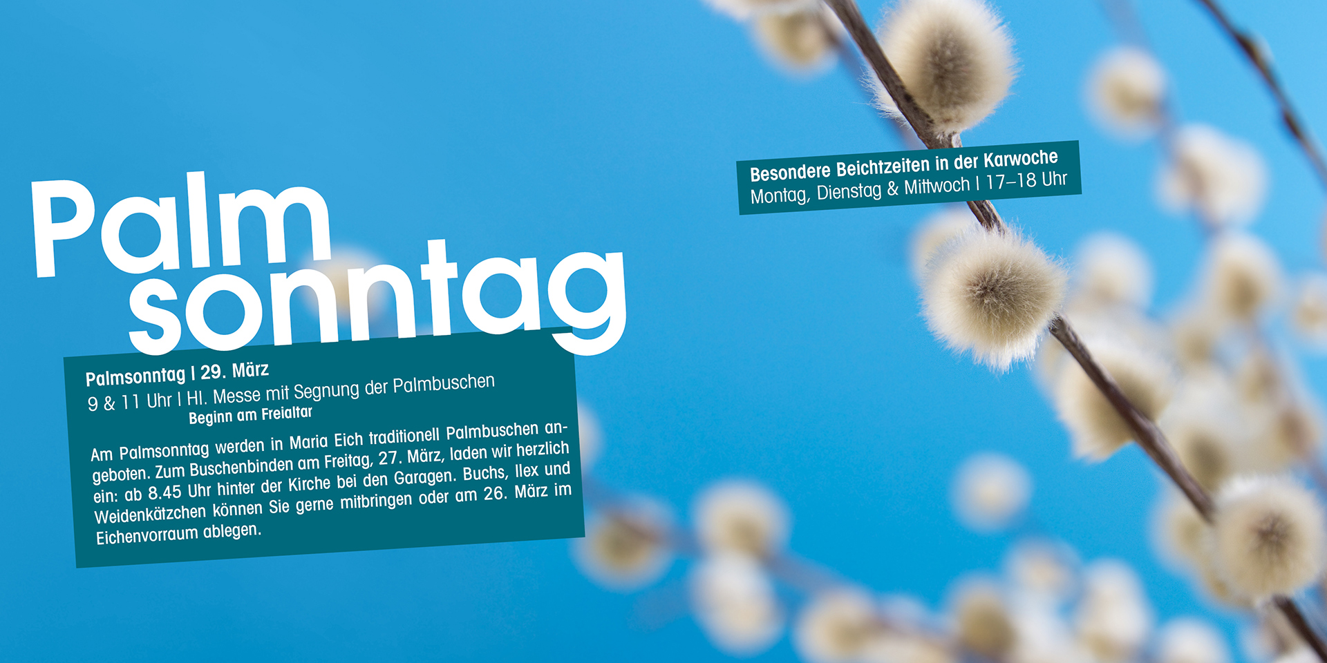 Buchs, Ilex und Weidenkätzchen gerne mitbringen oder am Vortag im Eichenvorraum ablegen.